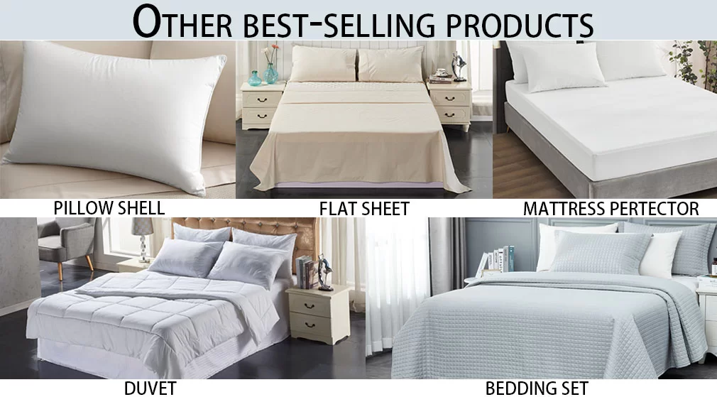 私たちSHIJIAZHUANG YINGFANG TRADE CO.,LTDの広範な繊維製品範囲には、高品質の白とバット染料のベッドシーツ、フィットシーツと枕カバー、キルト、白サテンストライプとプリントキルトカバー、毛布、枕、防水マットレスと枕プロテクター、キルティングマットレスパッド、マットレストッパー、防水トコジラミマットレスケース、枕シェル、カバー、エプロン、アクセサリーなどが含まれており、主に病院、ホテル、家庭で使用されます。